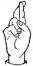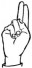На ћирилици написано БРАНИМИРКА РУХТЕСКИ састоји се из 18 слова [?]. Исписано ћириличном једноручном азбуком за глувонеме:
